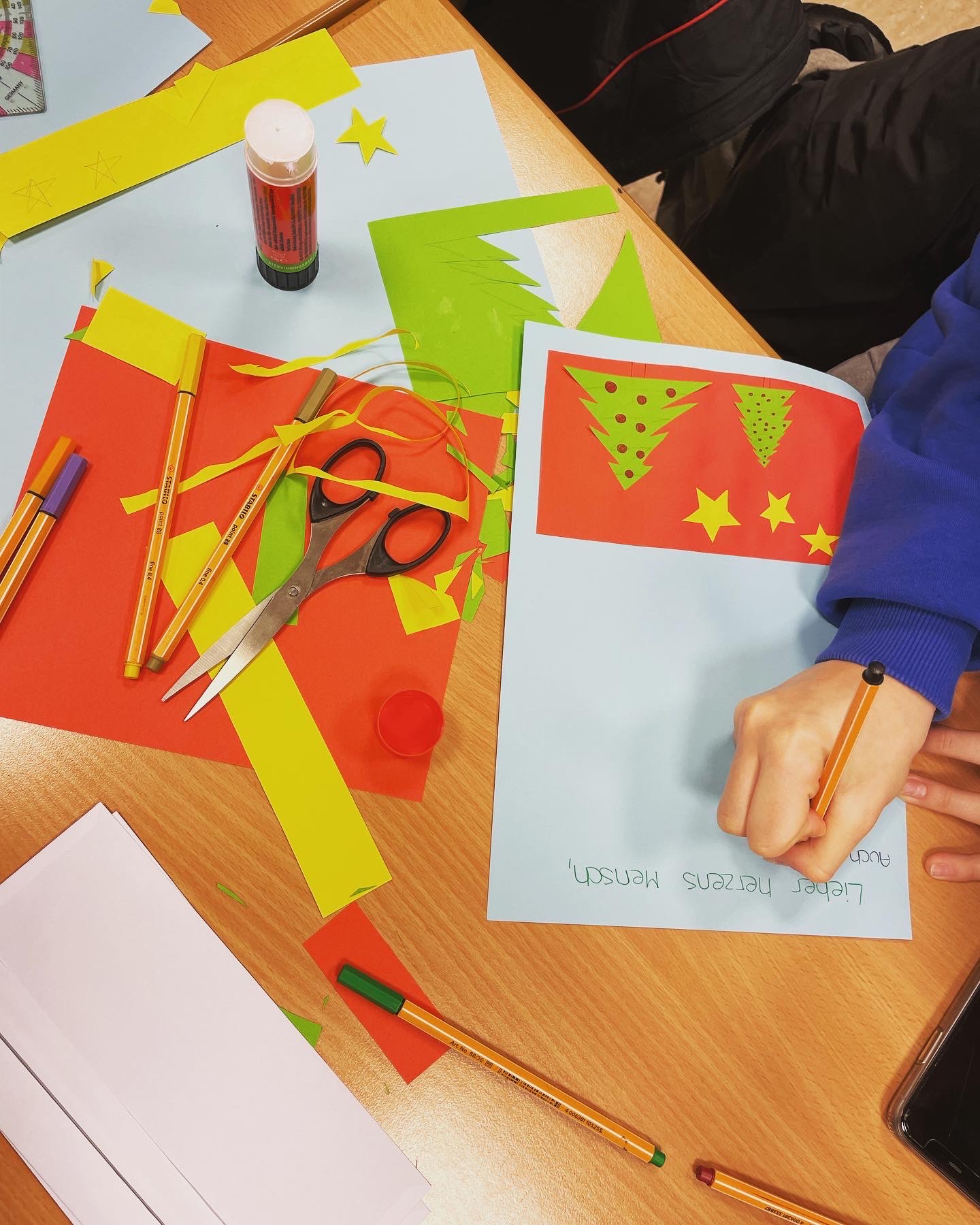 Recht schnell wurde beschlossen, dass das eigentlich etwas ist, was man mit der ganzen Schulgemeinschaft machen kann, um noch mehr Menschen eine Freude zu bereiten. Gesagt, getan. Und so wurden Mails verschickt und es wurde um Mithilfe aller Schüler*innen gebeten. Trotz der stressigen letzten Tage vor den Ferien wurden 414 Briefe und Karten gebastelt, geschrieben und bemalt. Die Schüler*innen hatten viel Spaß an dieser weihnachtlichen Aktion und waren begeistert davon, dass sie so den Bewohner*innen des Reilstifts eine kleine Weihnachtsfreude bereiten konnten.