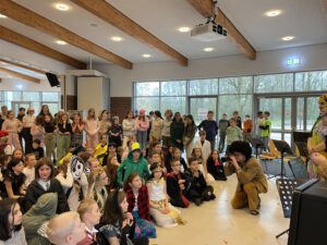 Ausgelassen feierten die Schülerinnen und Schüler der 5. und 6. Klassen am Rosenmontag Karneval. In der Mensa wurde getanzt und gesungen. Die Bläserklassen unterstützten mit Livemusik, es flogen Kamelle und die 6 besten Kostüme wurden prämiert. Helau und Alaaf! Karneval geht auch in Ostfriesland.