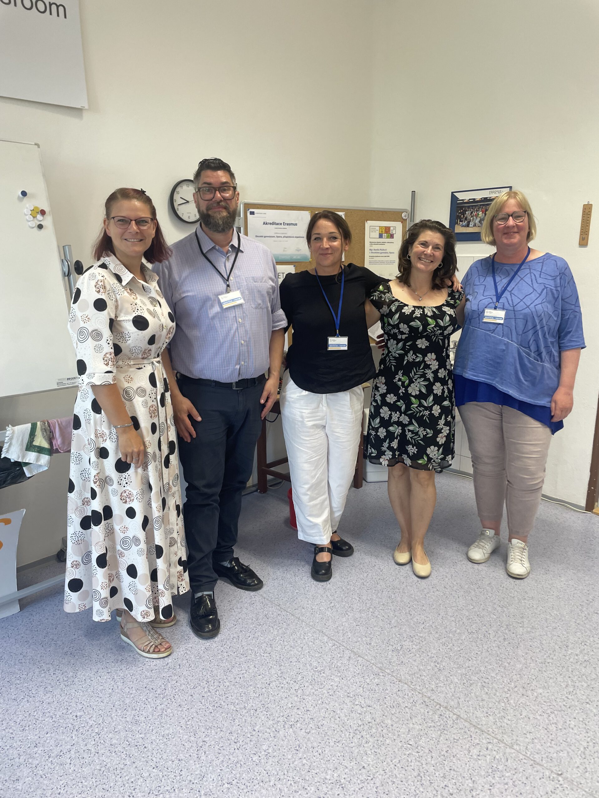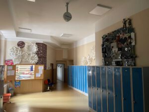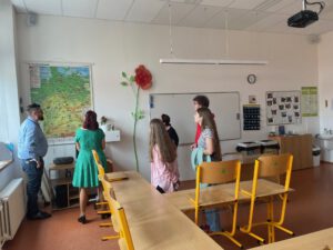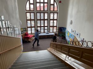 Die Vertreter*innen unserer Schule haben Unterrichtsstunden besucht, Gespräche mit Schüler*innen, Lehrkräften und der Schulleitung geführt. Die Gestaltung des altehrwürdigen Schulgebäudes hat den Rhauderfehner Lehrer*innen besonders gefallen: die Wände fast aller Flure waren mit Kunstwerken oder thematischen Ausstellungen gestaltet. Außerdem fiel auf, dass alle Schüler*innen einen Garderobenschrank zur Verfügung haben. Alle trugen Hausschuhe, um die Schule sauber zu halten.