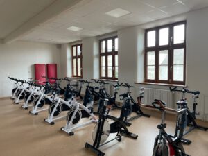 Für neidvolle Blicke sorgte zudem der Fitnessraum mit vielen Spinning-Fahrrädern und Geräten für Funktionstraining. Die Schüler*innen erklärten, dass etliche diese Räume auch nach der Schulzeit für individuelles Training nutzen würden.