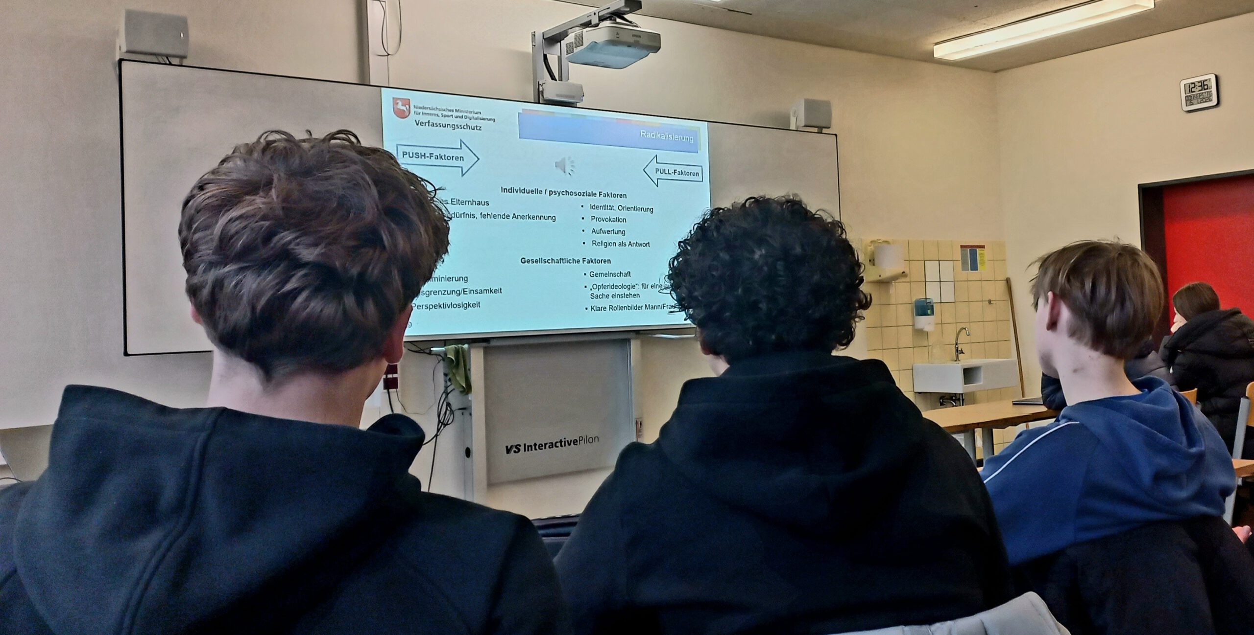 Um diese Fragen ging es beim dreistündigen Workshop mit dem Niedersächsischen Verfassungsschutz zur Extremismus, den das AWG jedes Jahr für den 10. Jahrgang organisiert. Die Schüler*innen erarbeiteten anhand von Bildern, Videos und Audiodateien, welche Ziele Extremist*innen verfolgen. Im Zuge dessen wurden den Schüler*innen auch Faktoren näher gebracht, die eine Radikalisierung junger Menschen begünstigen. Weiterhin hatten die Schüler*innen die Möglichkeit, Fragen zur Arbeitsweise des Verfassungsschutzes zu stellen.